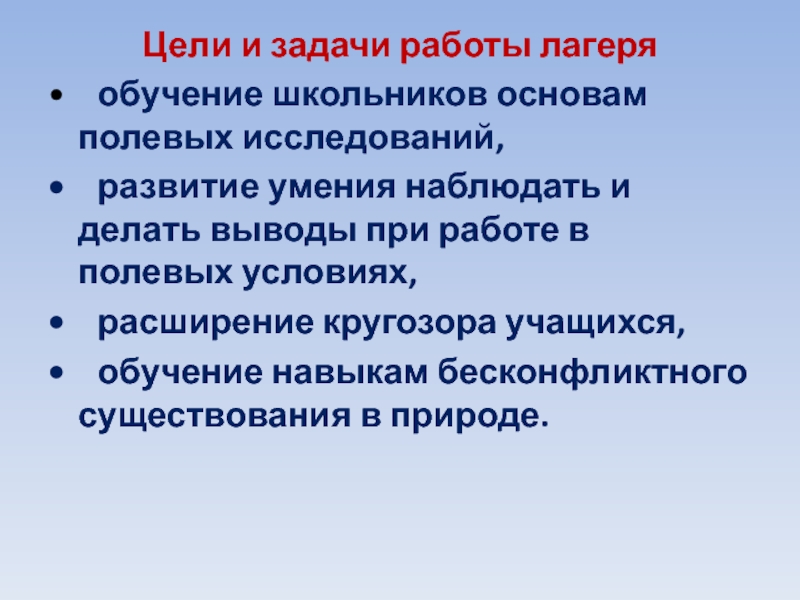• развитие умения наблюдать и делать выводы при работе в полевых условиях,