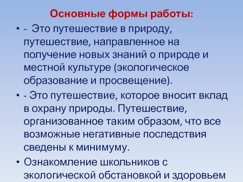 - Это путешествие, которое вносит вклад в охрану природы. Путешествие, организованное таким образом, что все возможные негативные последствия сведены к минимуму.