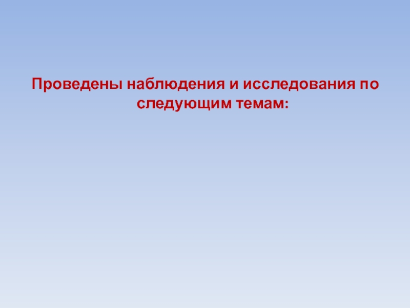 Слайд 13Проведены наблюдения и исследования по следующим темам: