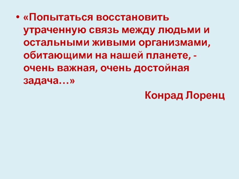 Слайд 2«Попытаться восстановить утраченную связь между людьми и остальными живыми организмами, обитающими