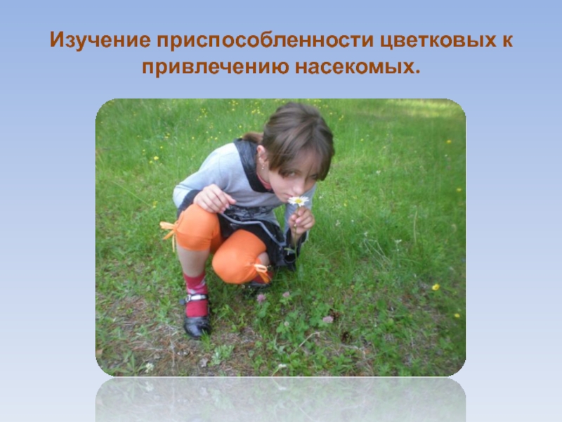 Слайд 16Изучение приспособленности цветковых к привлечению насекомых.