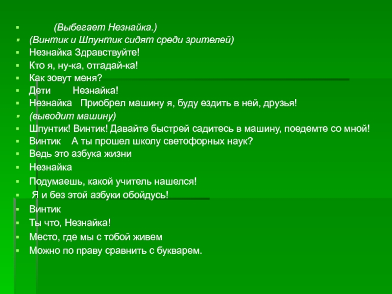 милиционера. Незнайка наезжает на стену) Незнайка Аи, ой, моя нога! Я ушиб ногу!