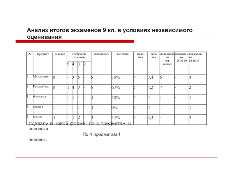 Слайд 37Анализ итогов экзаменов 9 кл. в условиях независимого оценивания