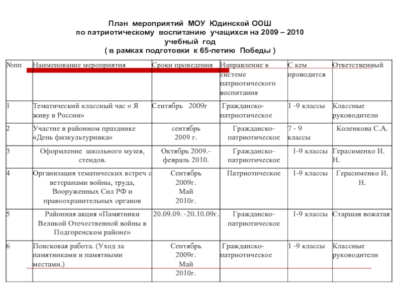 Слайд 22План мероприятий МОУ Юдинской ООШ