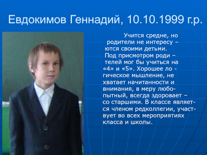 Слайд 8Евдокимов Геннадий, 10.10.1999 г.р.