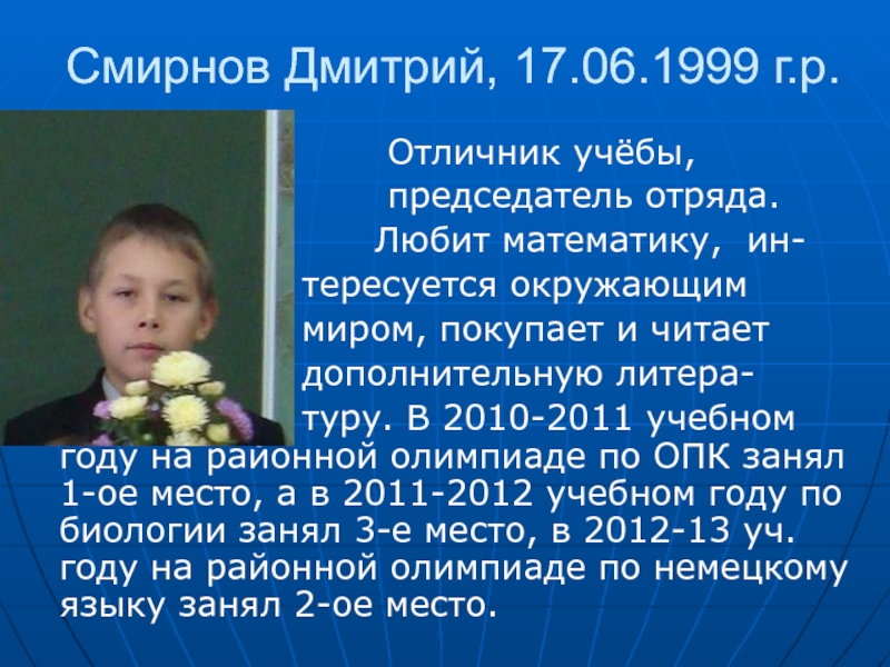 Слайд 2Смирнов Дмитрий, 17.06.1999 г.р.