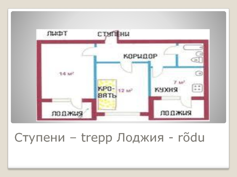 Слайд 2Ступени – trepp Лоджия - rõdu