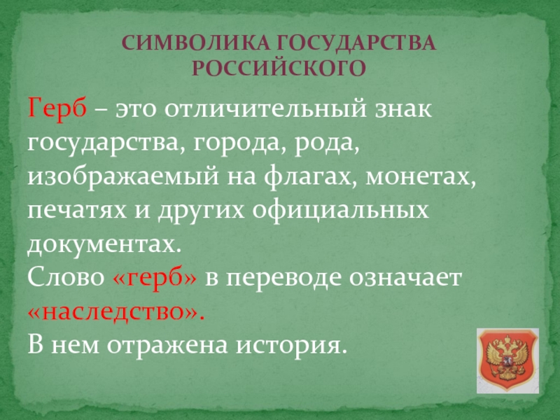 равноправных субъектов Российской федерации. Россия многонациональная страна. Сегодня друзья мои, мы поговорим с вами о символах нашей славной Отчизны. Скажите мне, а что для вас является символом?
