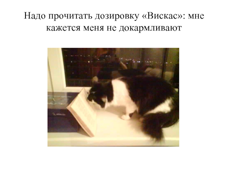 Слайд 6Надо прочитать дозировку «Вискас»: мне кажется меня не докармливают