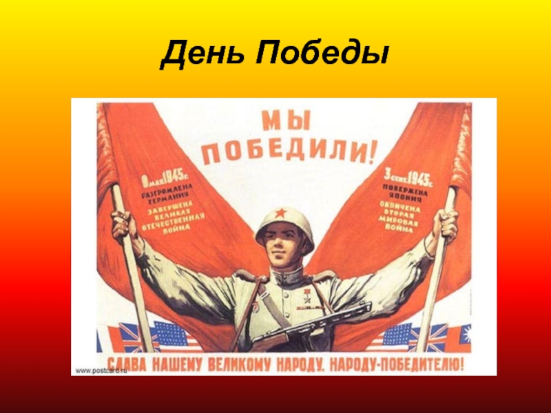страны. В ожесточённой борьбе Советский Союз и его союзники смогли разгромить фашистов. Мир был спасён.