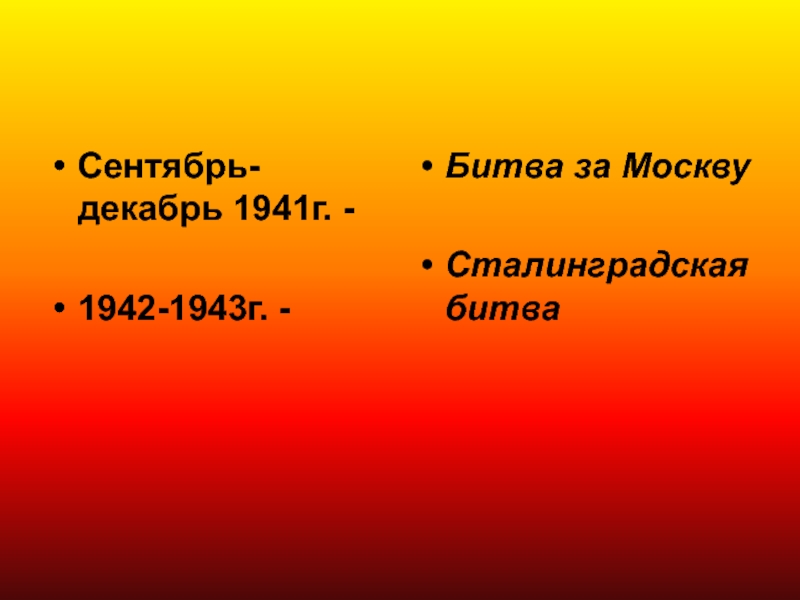 Слайд 9Битва за Москву сентябрь - декабрь 1941 года