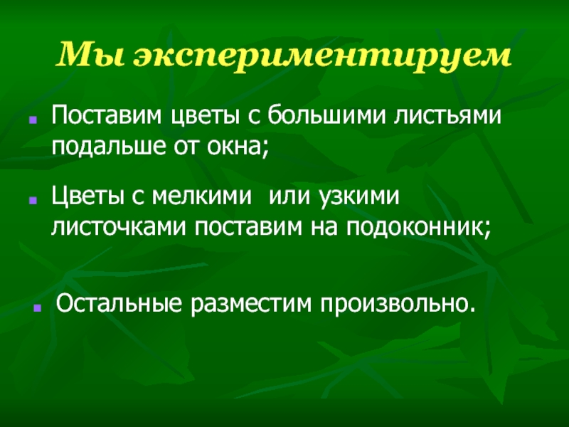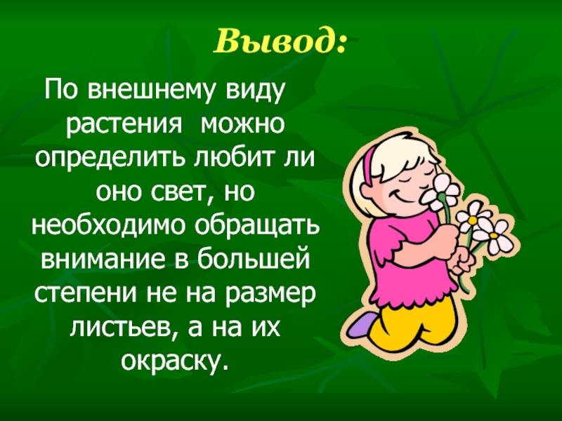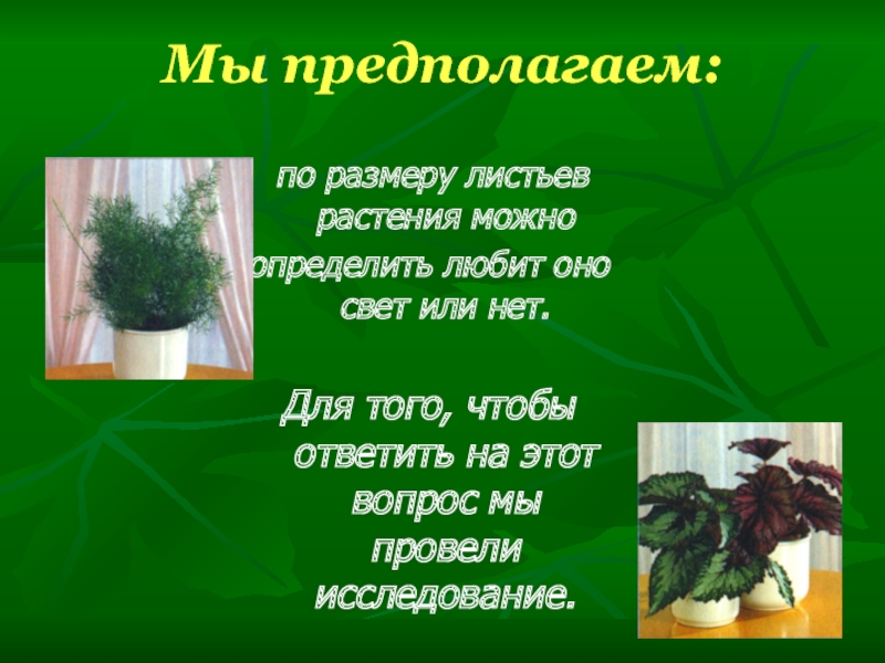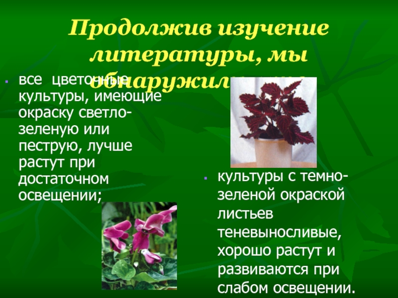 культуры с темно-зеленой окраской листьев теневыносливые, хорошо растут и развиваются при слабом освещении.