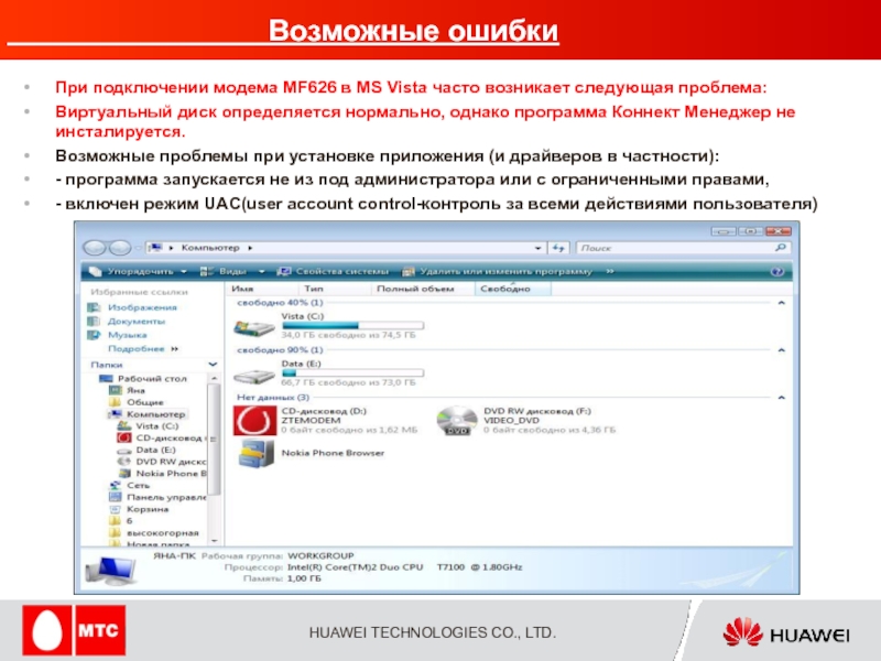 дуется подключать модем через основной и вспомогательный разъемы USB-кабеля.
