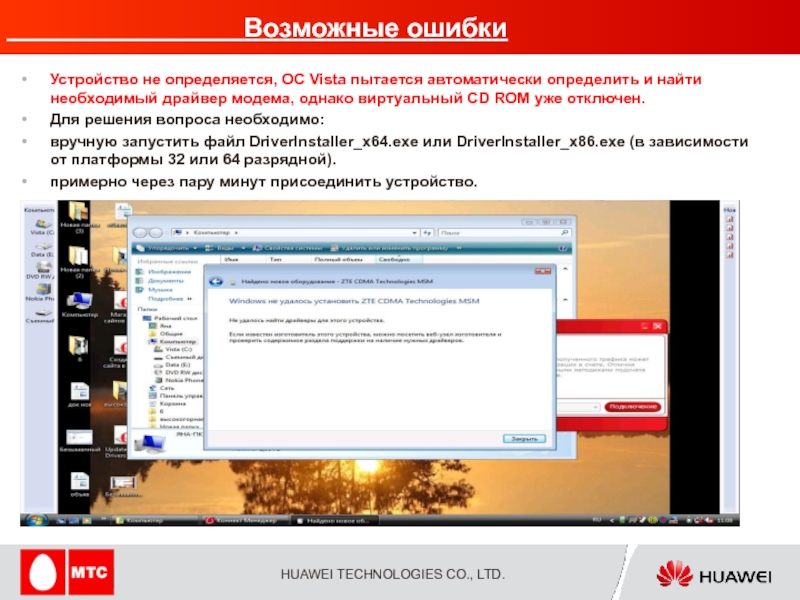 При отсутствии функции автоустановки: