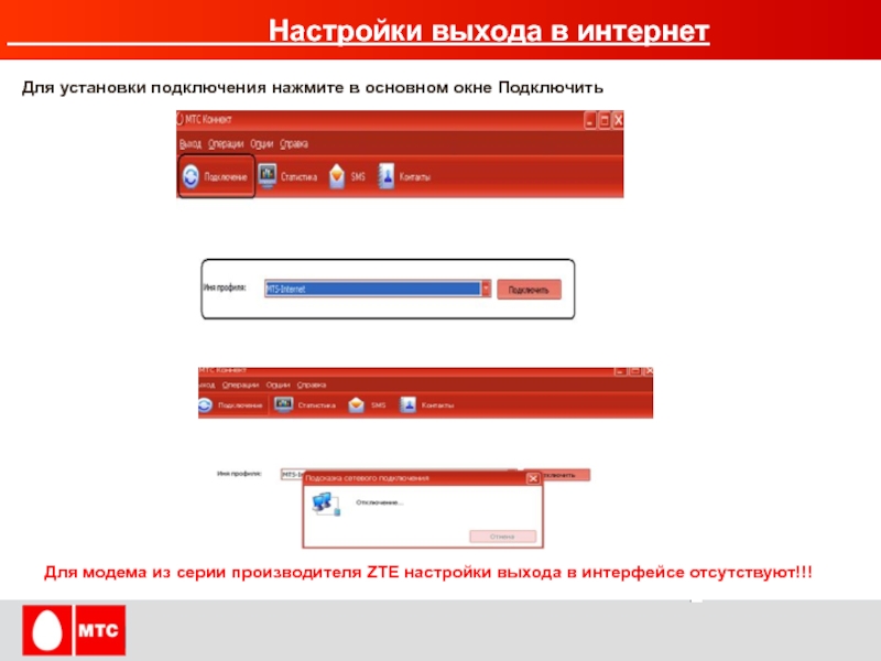 Для модема из серии производителя ZTE настройки выхода в интерфейсе отсутствуют!!!