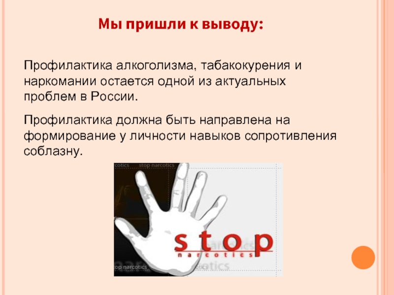 Профилактика должна быть направлена на формирование у личности навыков сопротивления соблазну.