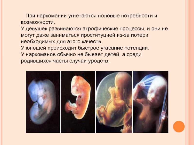 Слайд 15 При наркомании угнетаются половые потребности и возможности.