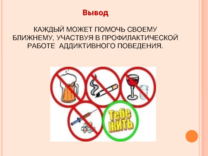 КАЖДЫЙ МОЖЕТ ПОМОЧЬ СВОЕМУ БЛИЖНЕМУ, УЧАСТВУЯ В ПРОФИЛАКТИЧЕСКОЙ РАБОТЕ АДДИКТИВНОГО ПОВЕДЕНИЯ.