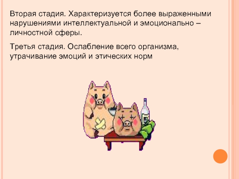 Слайд 20Вторая стадия. Характеризуется более выраженными нарушениями интеллектуальной и эмоционально – личностной
