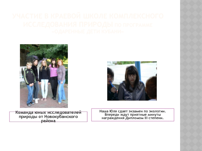 Наша Юля сдает экзамен по экологии. Впереди ждут приятные минуты награждения Дипломом III степени.