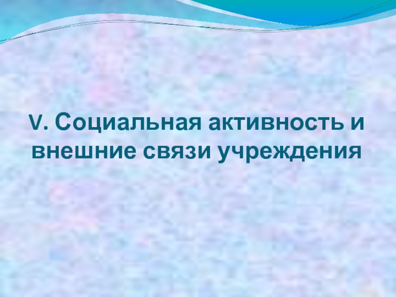 Слайд 28V. Социальная активность и внешние связи учреждения
