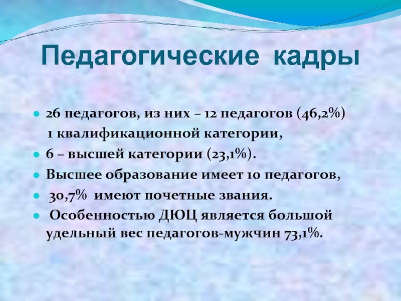 Особенностью ДЮЦ является большой удельный вес педагогов-мужчин 73,1%.