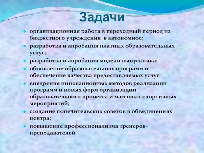 организационная работа в переходный период из бюджетного учреждения в автономное;