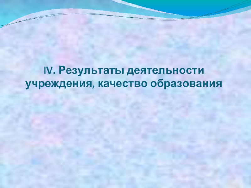 Слайд 21IV. Результаты деятельности учреждения, качество образования