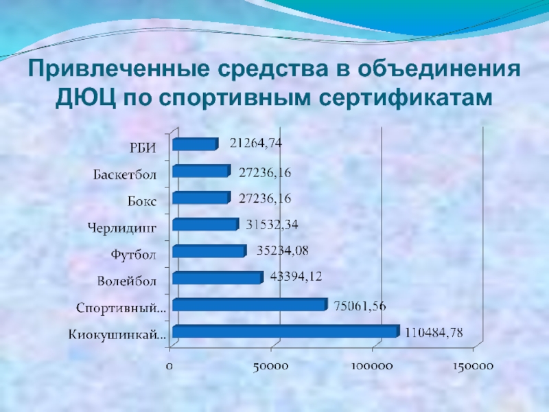 Слайд 20Привлеченные средства в объединения ДЮЦ по спортивным сертификатам