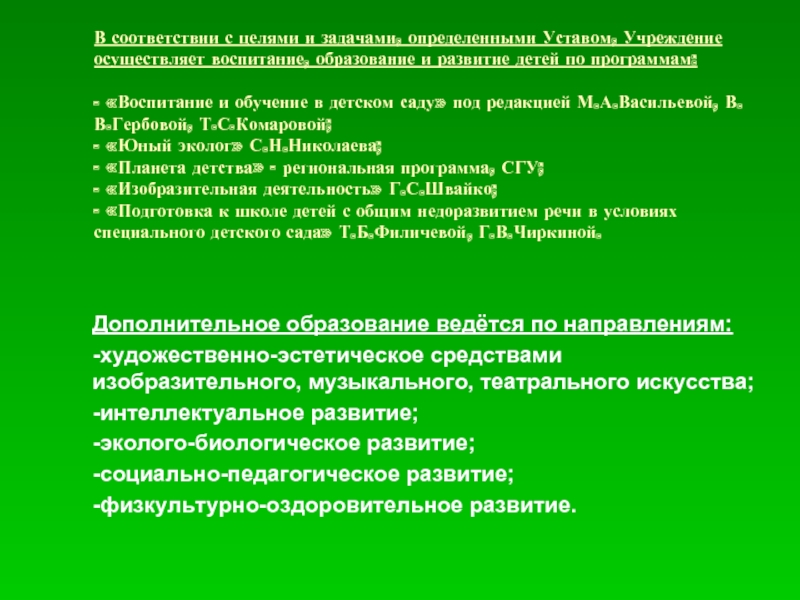 обеспечение познавательно-речевого, социально-личностного, художественно- эстетического и физического развития детей;