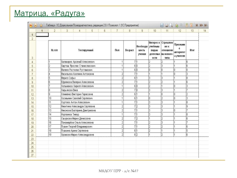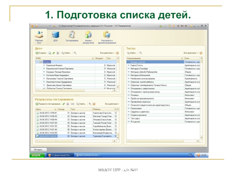 учреждения дошкольного образования через внедрение пилотного проекта «1С: Дошкольная психодиагностика»