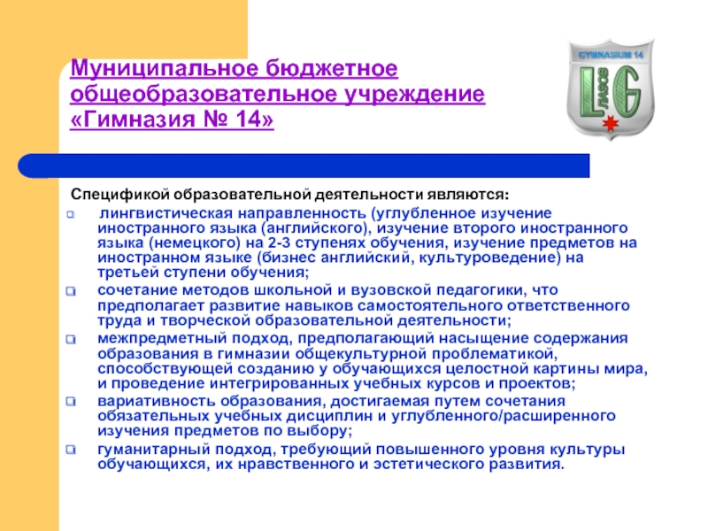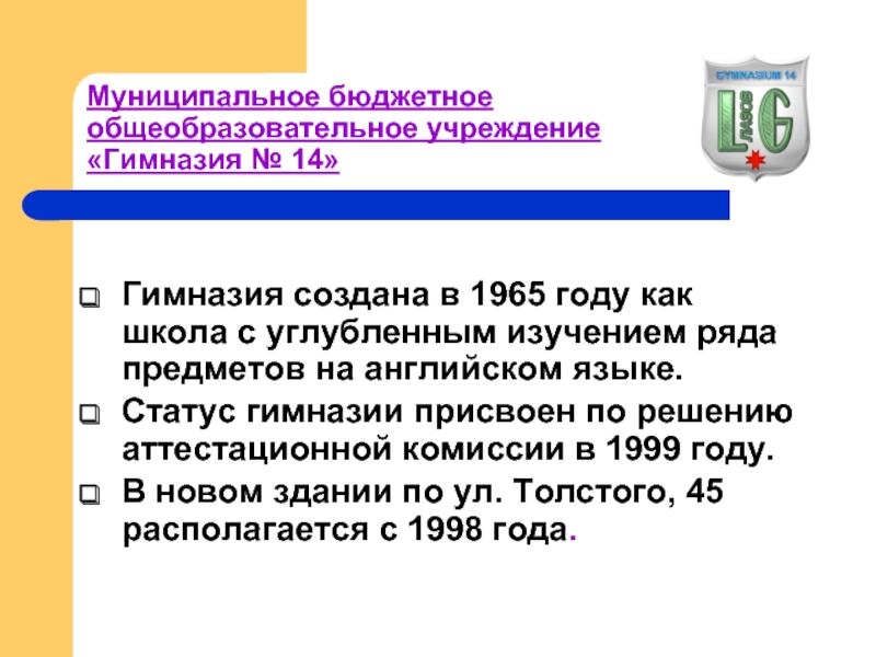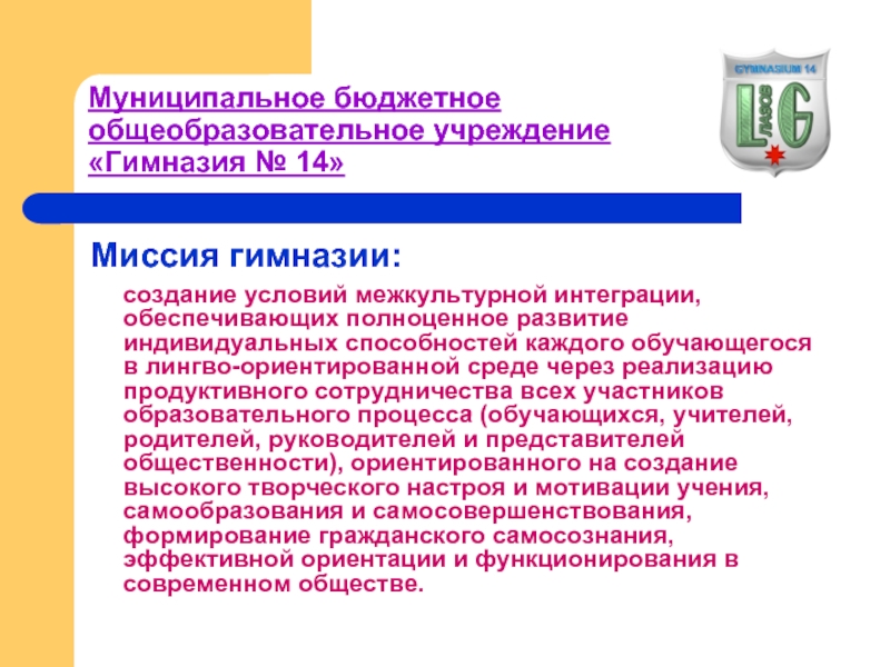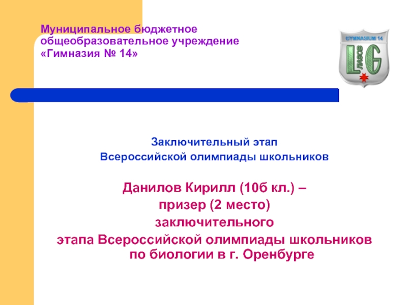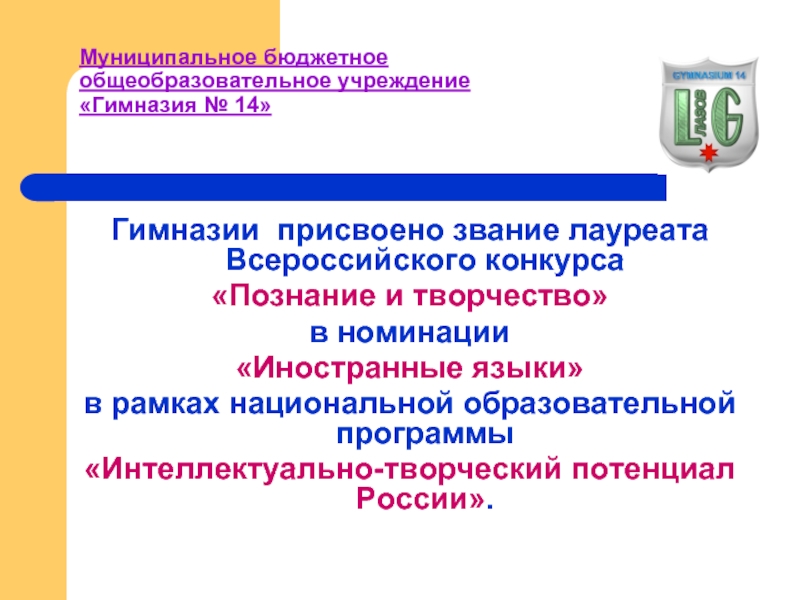 Слайд 1Муниципальное бюджетное общеобразовательное учреждение «Гимназия № 14»