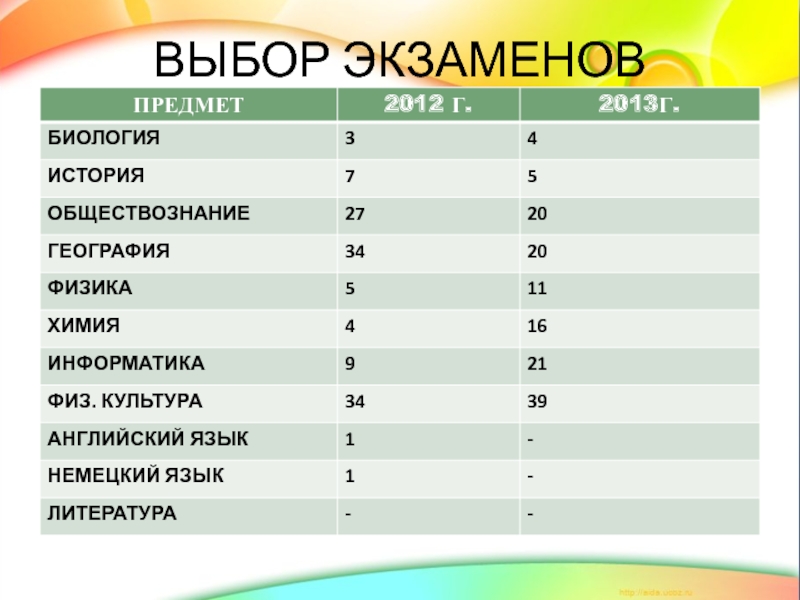 12 баллов – освобождение от экзамена по выбору