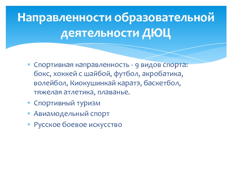 Направленности образовательной деятельности ДЮЦ