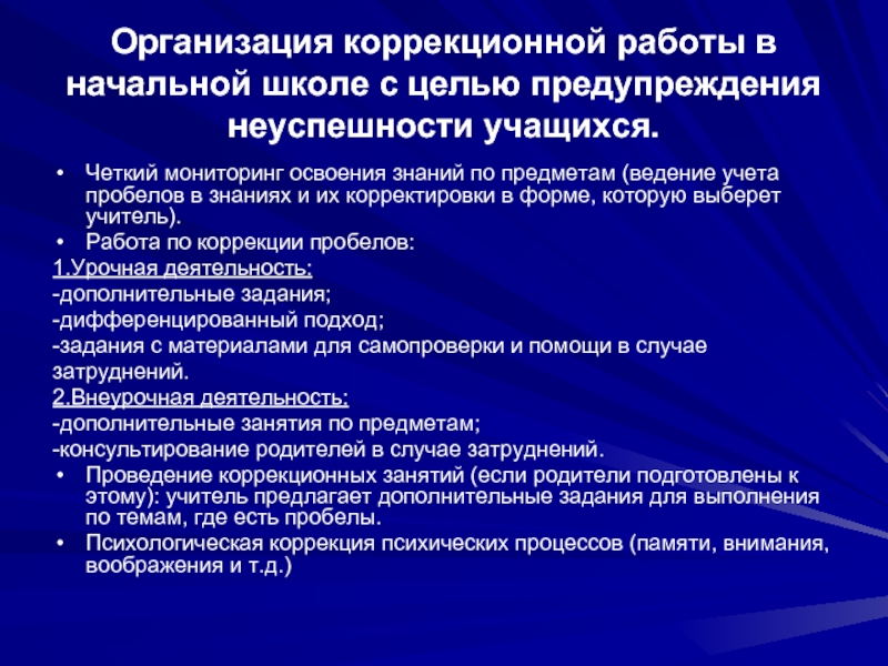 Слайд 2Организация коррекционной работы в начальной школе с целью предупреждения неуспешности учащихся.