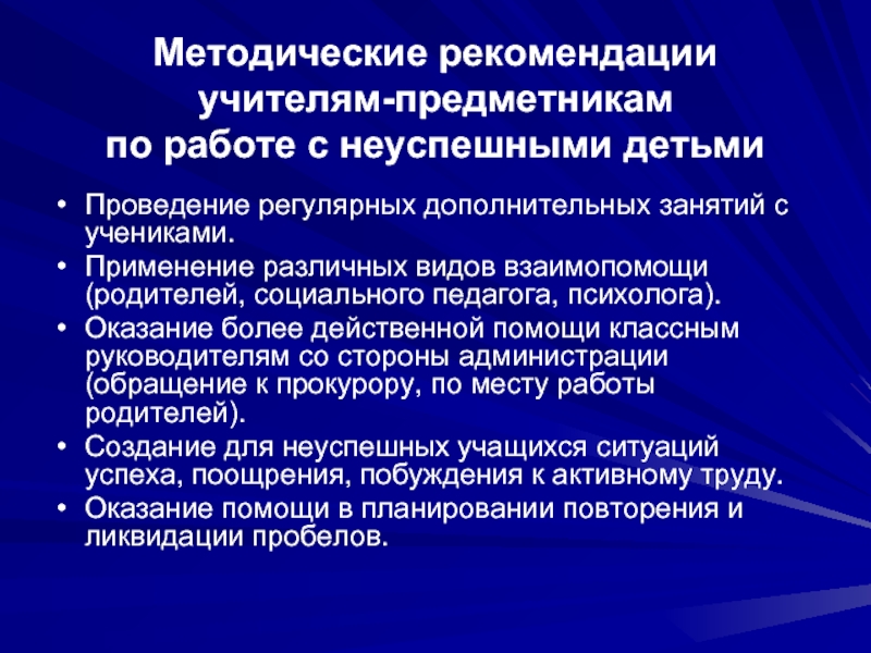по работе с неуспешными детьми