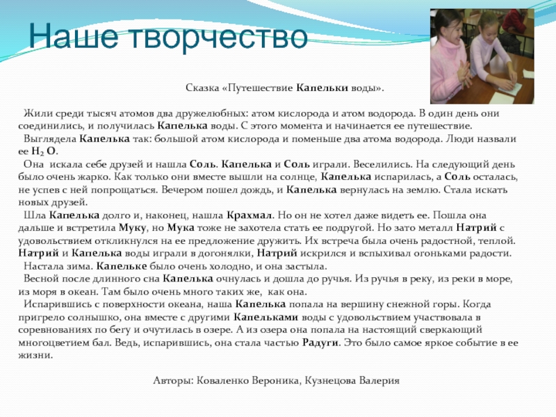 Занятия, проведение опытов с водой и выводы с учителями- руководителями.