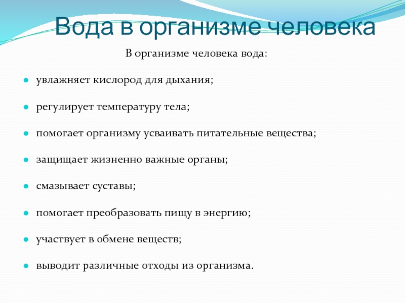 Вода восполняет недостаток жидкости в каждой клетке нашего организма.
