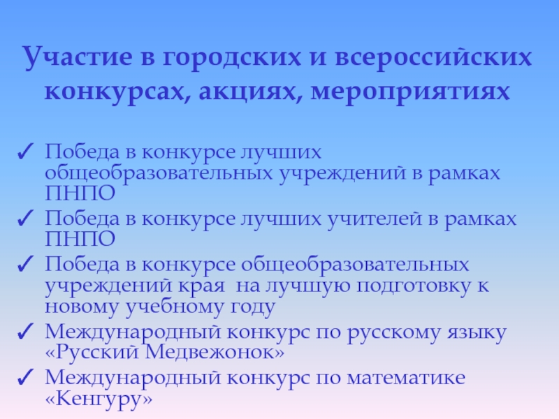 Слайд 8Участие в городских и всероссийских конкурсах, акциях, мероприятиях