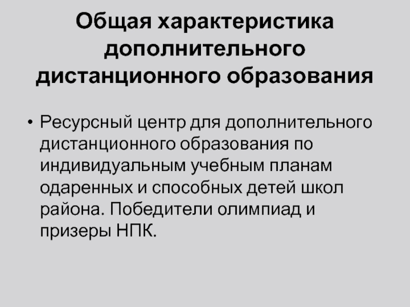 Слайд 8Общая характеристика дополнительного дистанционного образования