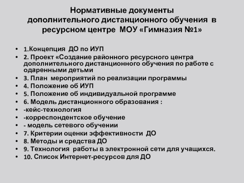 дополнительного дистанционного обучения в ресурсном центре МОУ «Гимназия №1»