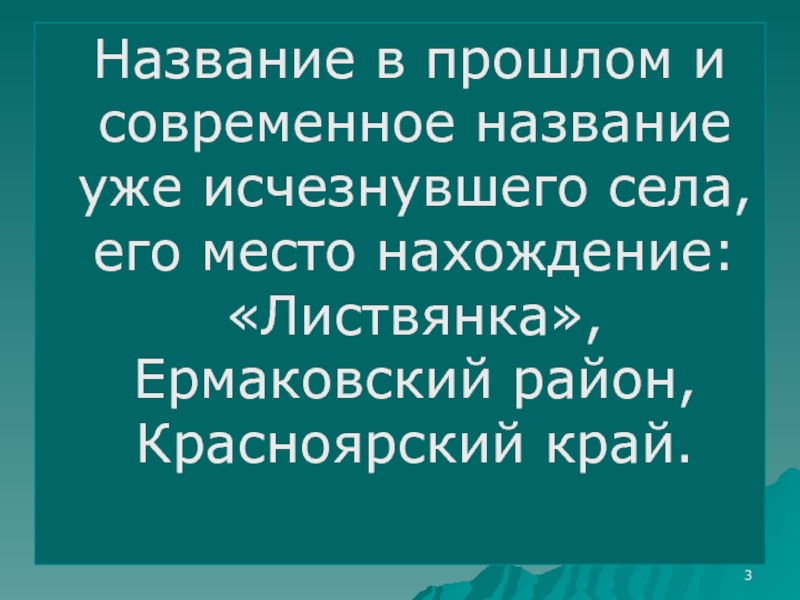 Слайд 3 Название в прошлом и современное название уже исчезнувшего села, его