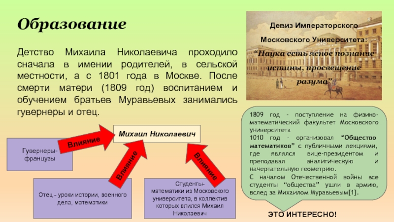 1809 год - поступление на физико-математический факультет Московского университета