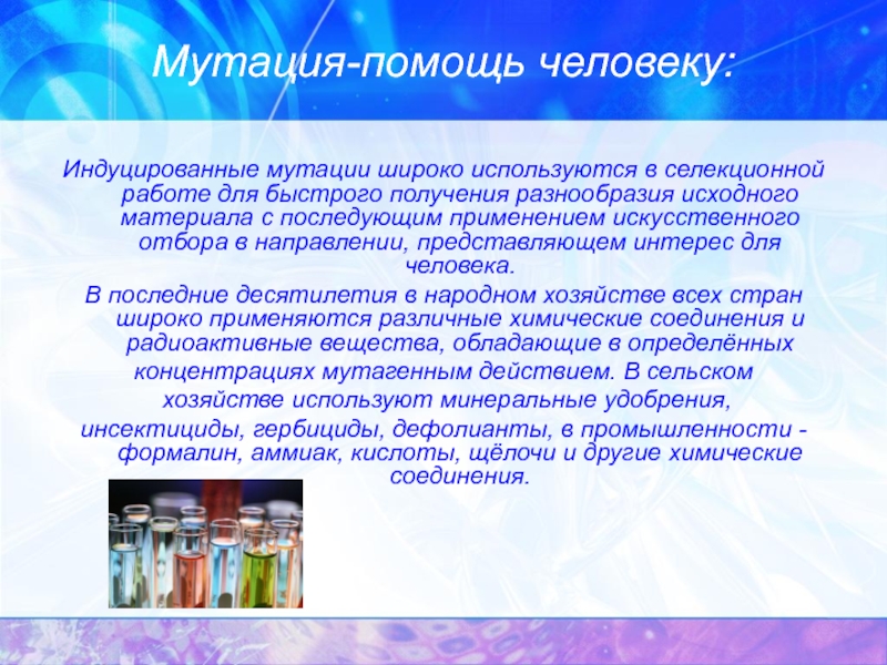 крайне редко с частотой 1-100 на миллион экземпляров данного гена. В настоящие время очевидно, что спонтанный мутационный процесс зависит как от внутренних, так и от внешних факторов, которые называют мутационным давлением среды. Индуцированные мутации возникают при воздействии на человека мутагенами –факторами, вызывающими мутации. Мутагены же бывают трех видов: