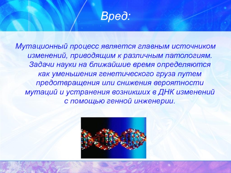 Мутационный процесс является главным источником изменений, приводящим к различным патологиям. Задачи