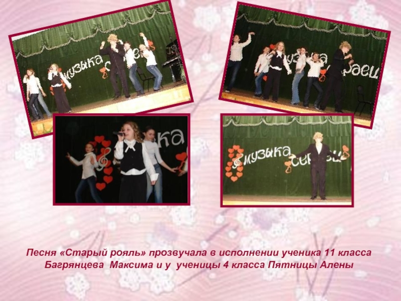 Слайд 5Песня «Старый рояль» прозвучала в исполнении ученика 11 класса Багрянцева Максима