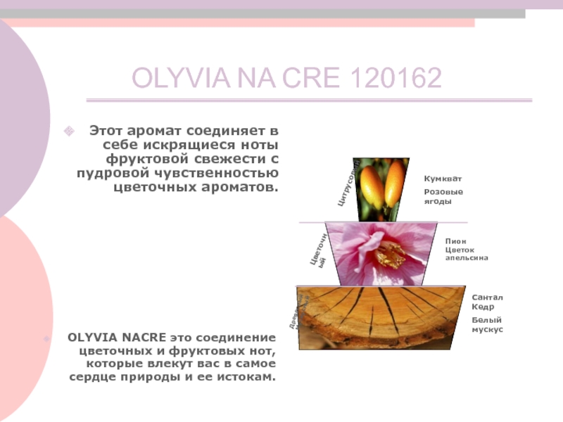 Свежесть и бархатистость характеризует этот аромат, он богат такими нотами: деликатными как лилия, водными как лотос или цикламен, и воздушными как пион.