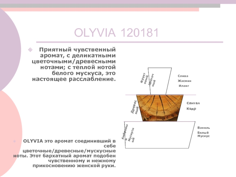 Приятный чувственный аромат, с деликатными цветочными/древесными нотами; с теплой нотой белого мускуса, это настоящее расслабление.