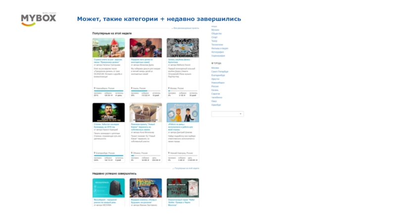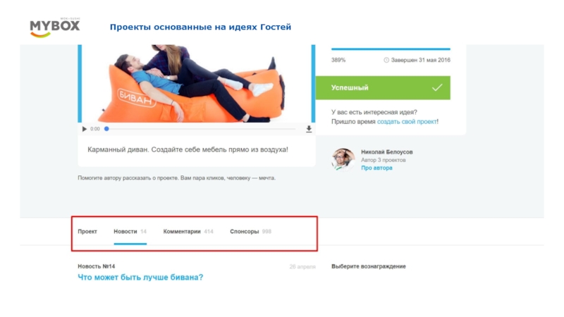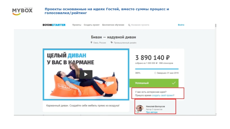 Слайд 10Проекты основанные на идеях Гостей, вместо суммы процесс и голосовалка/рейтинг