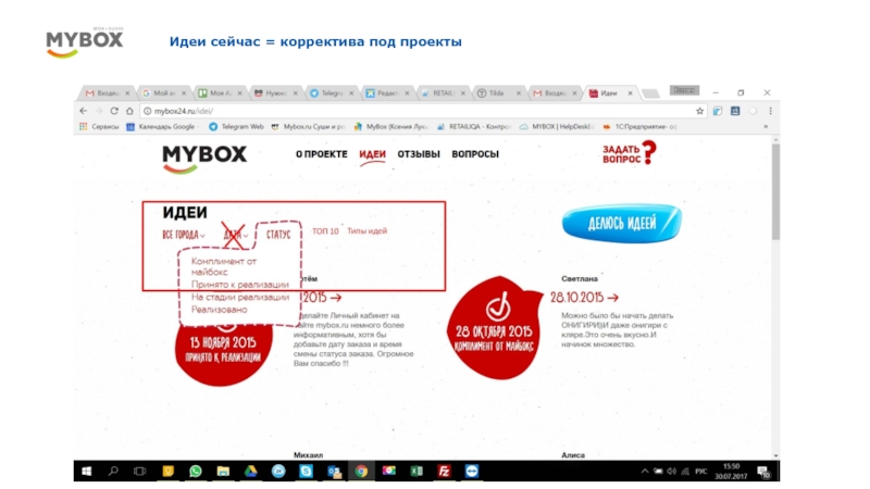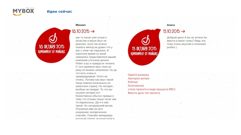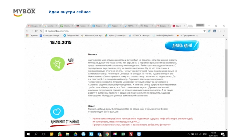 Переориентир с сайта жалоб на сайт идей, которые трансформируются в проекты компании и реализуются.